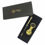 The price includes 19% TaxesCelebrate 125 years of Der Club with this elegant gift set, combining a black-and-gold ballpoint pen (black ink) and a golden metal keyring engraved with Der Club 125.